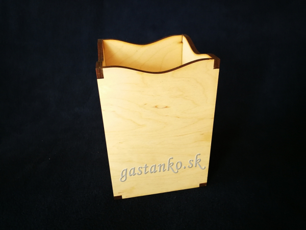 Drevený pevný a stabilný zásobník na varešky, ktorého hľbku sme navrhli optimálne k dľžke varešiek. S elegantne vedenou líniou horných hrán. Rozmery: 12x12x17cm. Hrúbka materiálu :6mm kvalitná preglejka. Tento produkt sme pre vás navrhli my. Skombinujte si ho s naším 4-priečinkovým stojanom v rovnakom štýle :)
